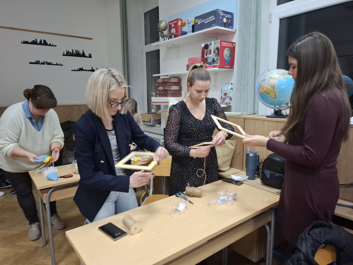 I ove godine pripreme za školsku priredbu i sajam su u punom jeku. Osim marljivih ruku naših učenika,  u srijedu, 19. studenoga i učitelji su sudjelovali u pripremi materijala za Božićni sajam izradom okvira, koje će dovršiti vrijedne i kreativne ruke naših učenika.