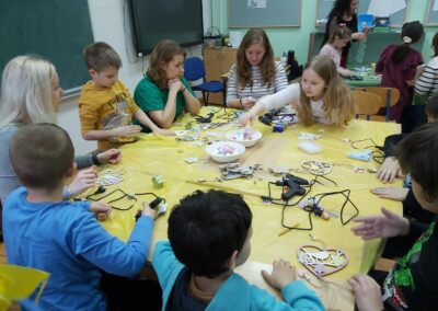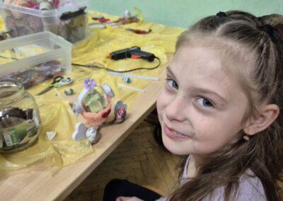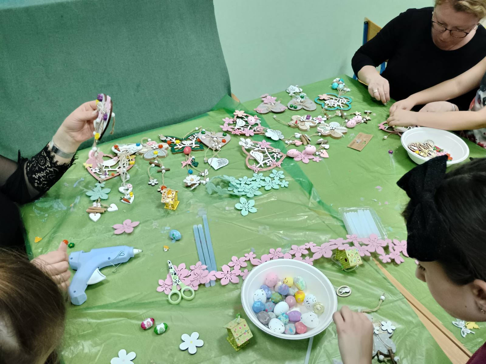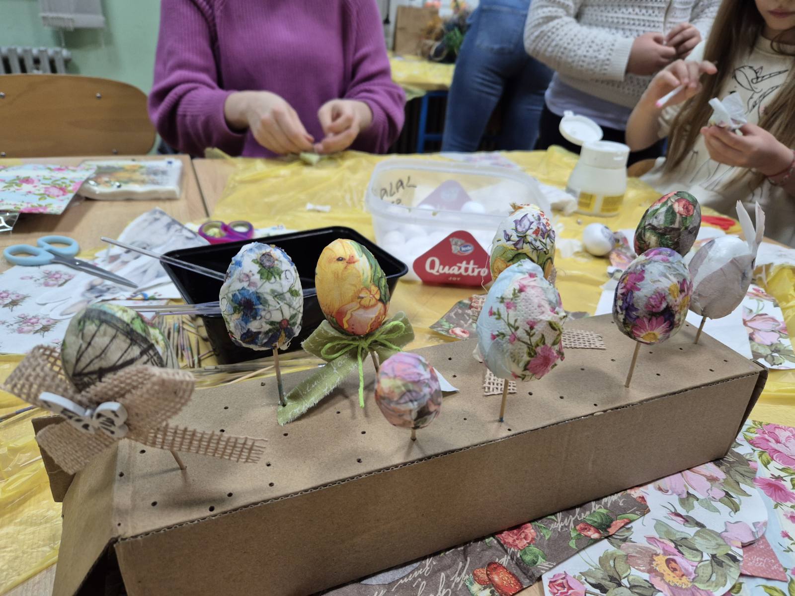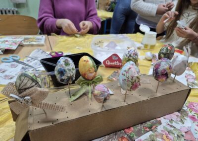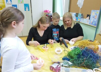 Učenici su se s velikim entuzijazmom i ozarenim licima prihvatili posla. Tijekom radionice izrađivali su uskrsna gnijezda, košarice i pisanice, koristeći razne tehnike i materijale poput salveta, špage, vune i tkanine. Posebno ih je veselilo ukrašavanje i lijepljenje raznih motiva, pri čemu su mogli slobodno izraziti svoju maštovitost i originalnost.