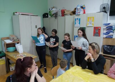 Na samom početku nekoliko učenica predmetne nastave srdačno je pozdravilo roditelje te najavilo aktivnosti koje su bile planirane za radionicu. U svom uvodnom obraćanju istaknule su kako je cilj druženja potaknuti kreativnost i maštu, ali i stvoriti opuštenu i ugodnu atmosferu za sve sudionike.
