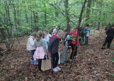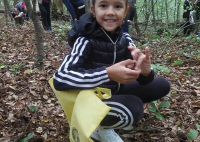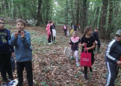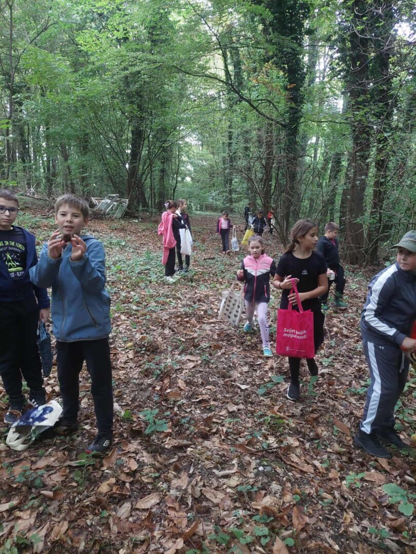 Dolaskom u šumu učenici su odmah prionuli u berbu kestena. Tijekom šetnje i aktivnosti uočavali su različite promjene u prirodi ujesen – opadanje lišća, promjene boja na krošnjama, maglu i oblake kao vremenske pojave te prilagodbu ljudi i životinja jesenskim uvjetima. S obzirom na vremenske prilike toga dana, bilo je prigodno poučiti učenike i o snalaženju i orijentaciji u šumi. Posebno su promatrali biljni i životinjski svijet šume te rad ljudi u tom razdoblju. S obzirom na niže temperature, učenici su bili primjereno i toplije odjeveni. Tijekom pješačenja pjevali su vesele pjesmice čime je cjelokupno iskustvo bilo vedro i raspjevano.