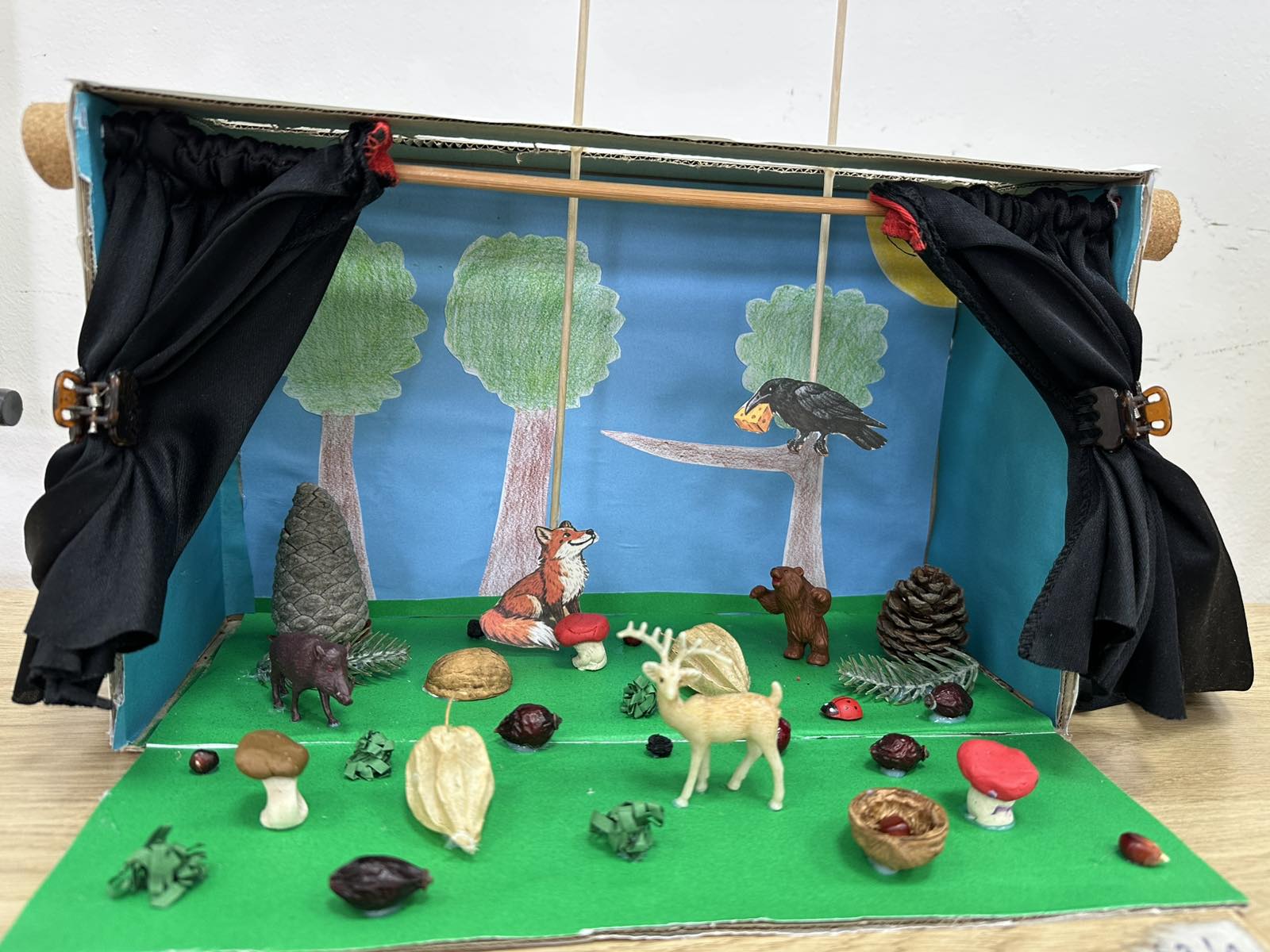 Razredni projekt „Bajka u kazalištu“ pretvorio je obične kutije u male scenske prostore. Svaka kutija postala je jedinstvena pozornica s pažljivo izrađenom scenografijom, likovima iz poznatih bajki. Učenici su koristili karton, papir, tkaninu i prirodne materijale kako bi stvorili čarobne šume, dvorce i svjetove iz mašte. Posebnu vrijednost ovom projektu daje raznolikost ideja tako da su „pozornicom“ prošetali