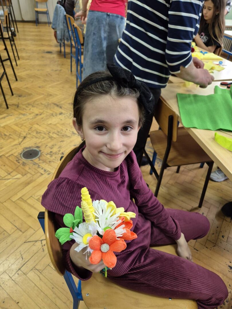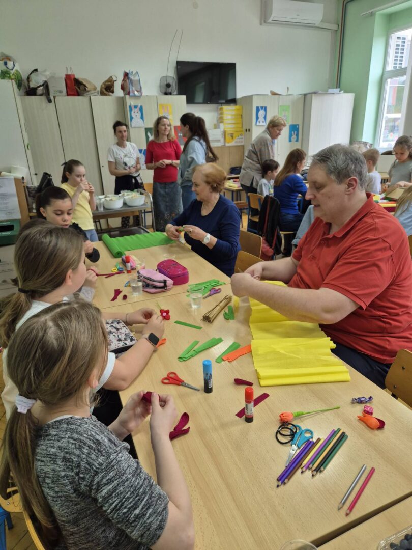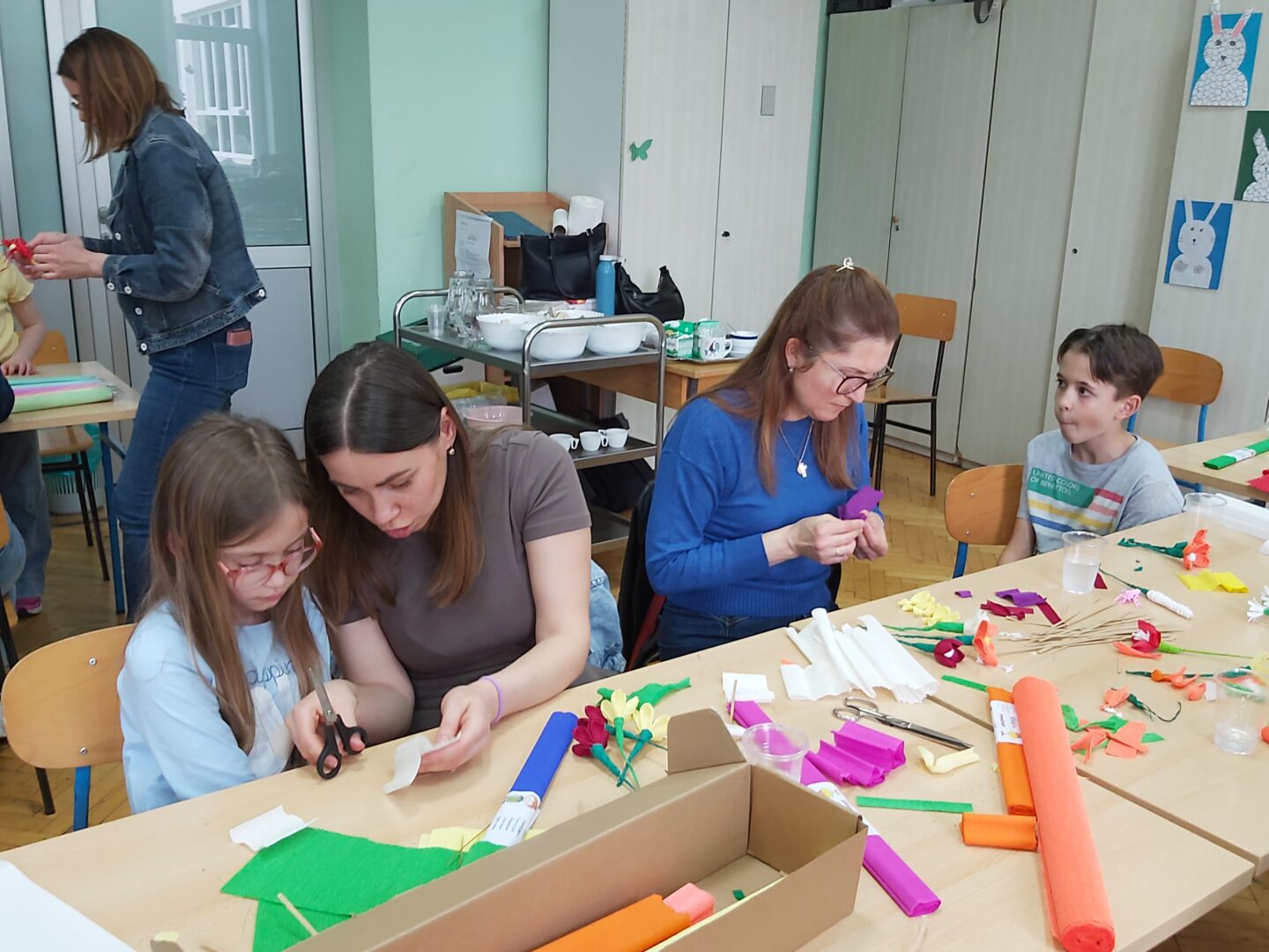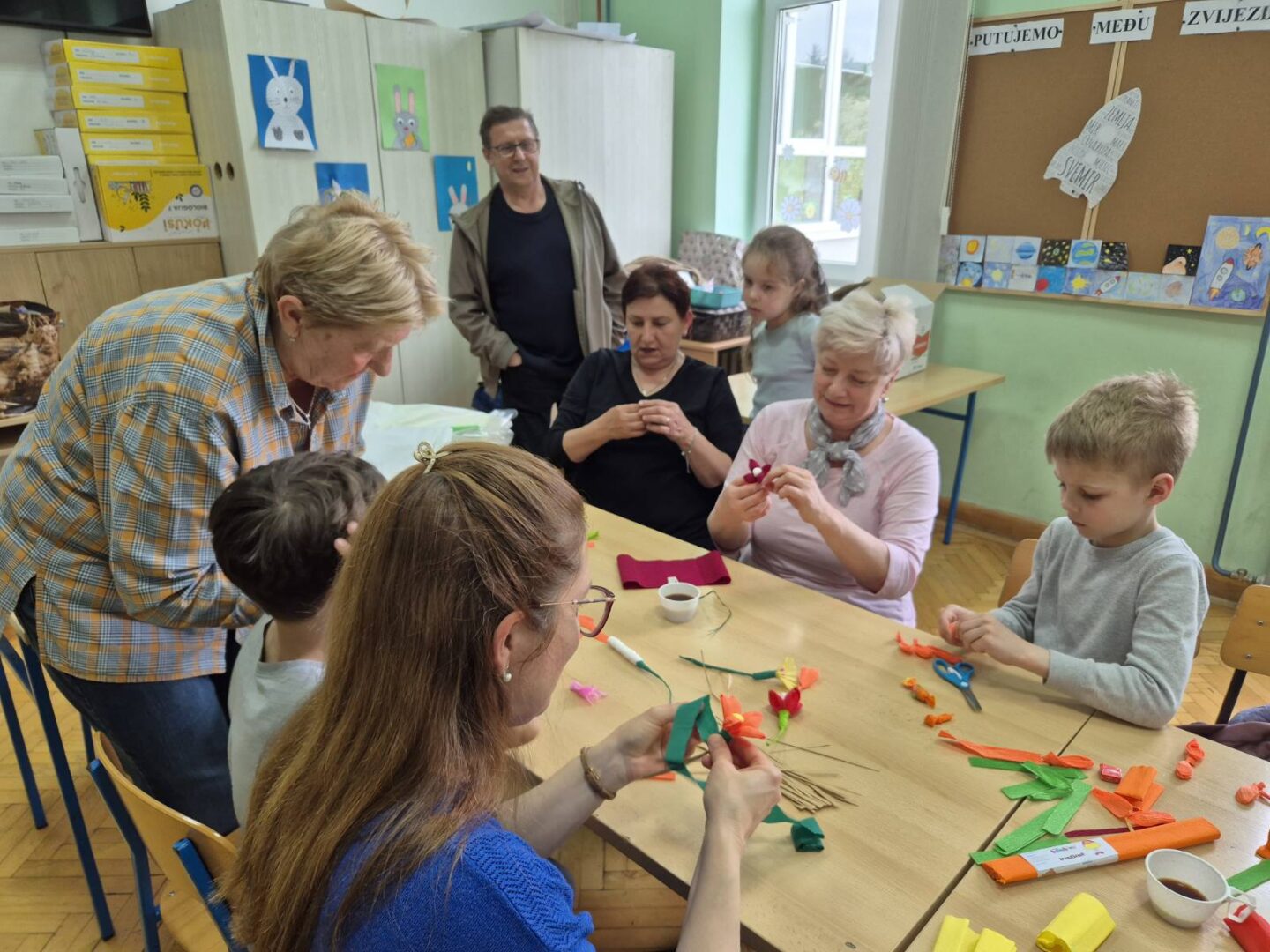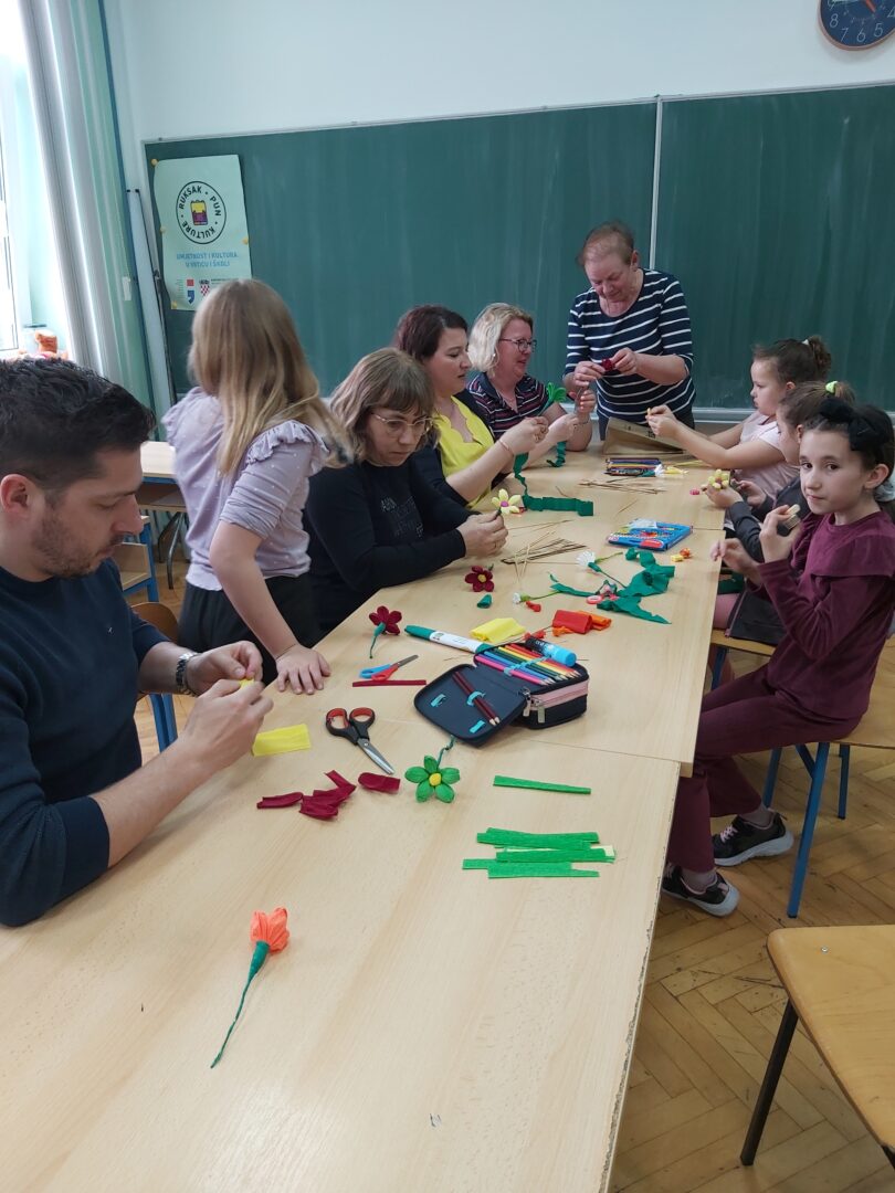 Nakon predavanja uslijedio je kreativni dio programa – radionica izrade cvijeća od krep papira, koja se tematski nadovezala na obrađene običaje. Radionicu su vodile članice Kulturno-umjetničke udruge Magda i Luisa iz Madžareva, koje su svojim znanjem, strpljenjem i vedrim duhom potaknule sudionike na stvaralaštvo. Vrijedne ruke izrađivale su šarene buketiće cvijeća, unoseći dodatnu živost i radost u cijeli susret.