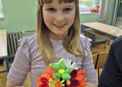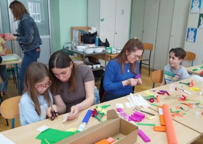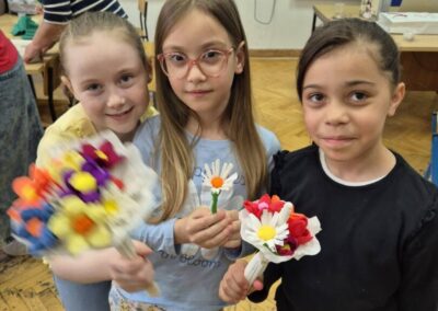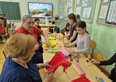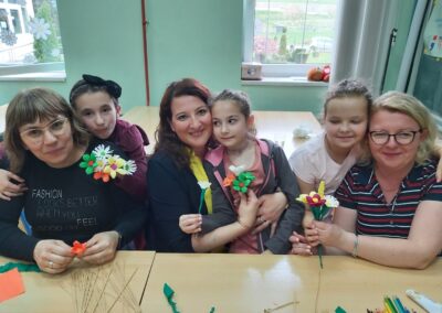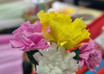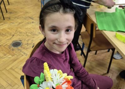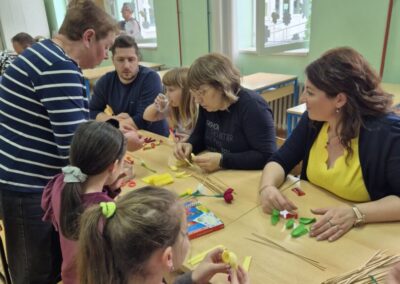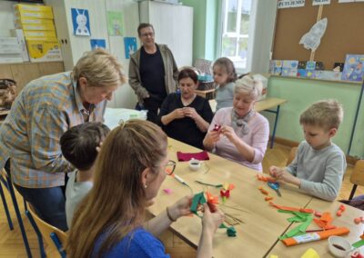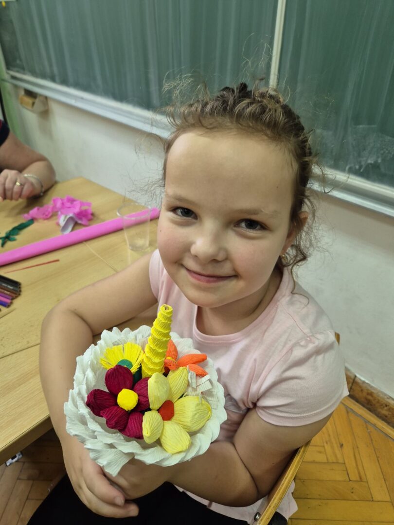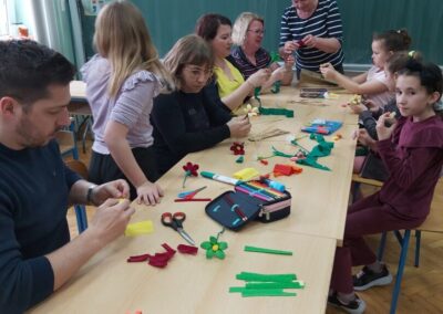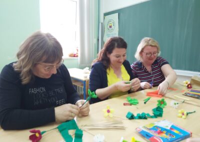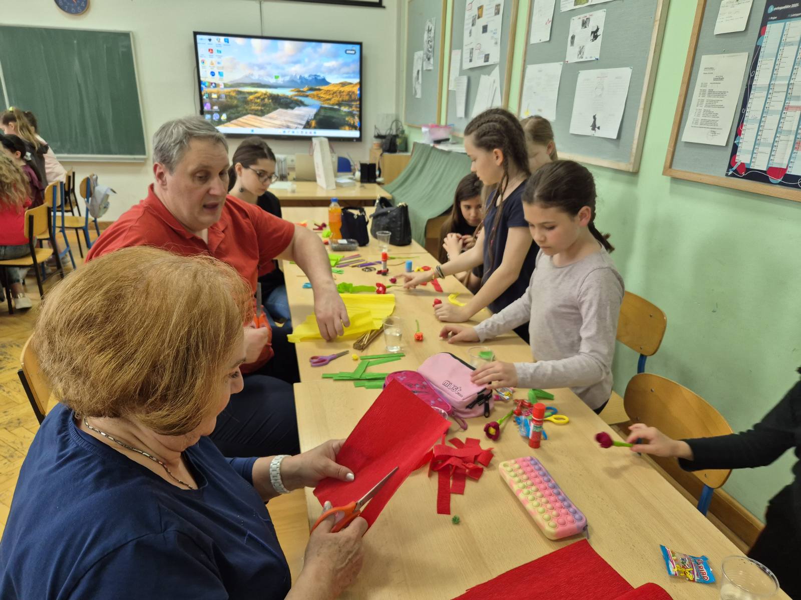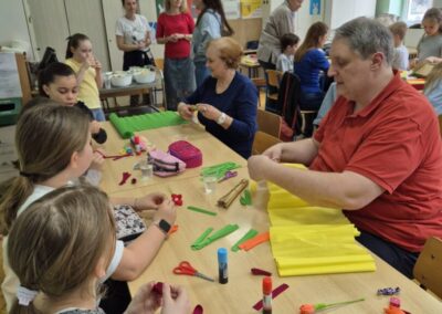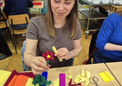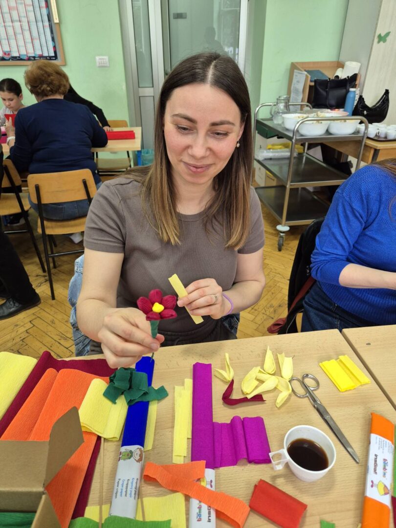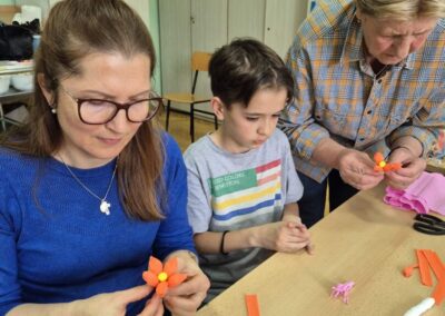 Nakon predavanja uslijedio je kreativni dio programa – radionica izrade cvijeća od krep papira, koja se tematski nadovezala na obrađene običaje. Radionicu su vodile članice Kulturno-umjetničke udruge Magda i Luisa iz Madžareva, koje su svojim znanjem, strpljenjem i vedrim duhom potaknule sudionike na stvaralaštvo. Vrijedne ruke izrađivale su šarene buketiće cvijeća, unoseći dodatnu živost i radost u cijeli susret.