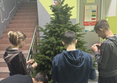 U veselom blagdanskom duhu učenici 8. razreda naše škole ove su godine zajednički okitili božićno drvce, zajedno sa svojim razrednikom Nikolom Katalenićem. Uz puno veselja i međusobne suradnje, hodnik je tog trenutka postao središte kreativnosti i pripreme za nadolazeće blagdane.