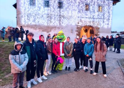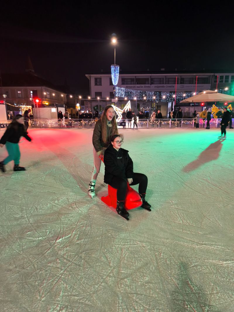 Nakon razgleda uputili smo se na doček Djeda Mraza kod Starog grada gdje je sletio na svojim sanjkama. Obišli smo Čarobni grad Djeda Mraza. Pozdravili se s Grinčem, Djedom Mrazom i vilenjacima. Razgledali baroknu jezgru grada koja je u božićnom ruhu. Sjeli na čaj kojim nas je počastila škola od prihoda sa Božićnog sajma – koristimo priliku i tu reći hvala ravnateljici Nataši Fadiga i nadamo se ponoviti dogodine. Na Ledenoj čaroliji smo uspješno klizali i družili se uz puno smijeha i zabave.