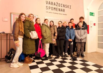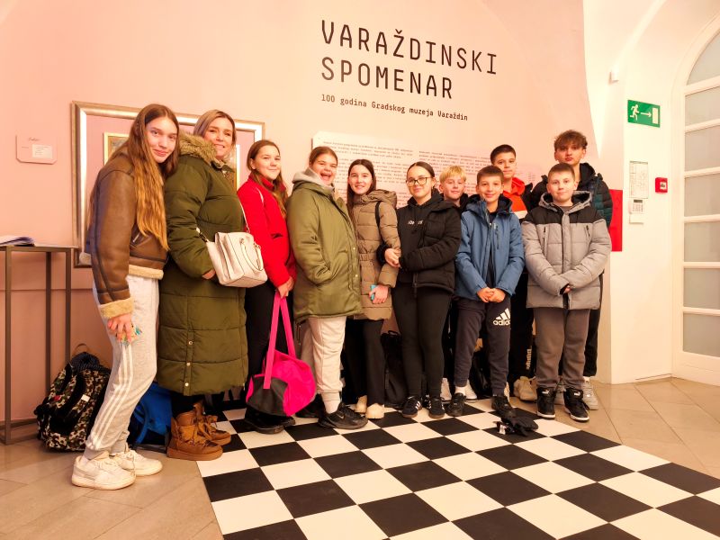 Najprije smo posjetili Gradski muzej Varaždin i novi postav u palači Patačić – izložbu Varaždinski spomenar. Ta izložba postavljena je povodom 100. godišnjice postojanja GMV. Izložbu smo posjetili u sklopu projekta Muzej i škola i ovim putem zahvaljujemo Općini Sveti Ilija – načelniku Općine Marinu Bosilju što je prepoznao važnost tog projekta i podržava ga već niz godina. Općina je financirala iskaznice MIŠ koje nam omogućavaju ulaz na izložbe tijekom cijele godine.