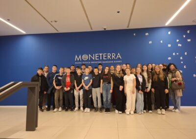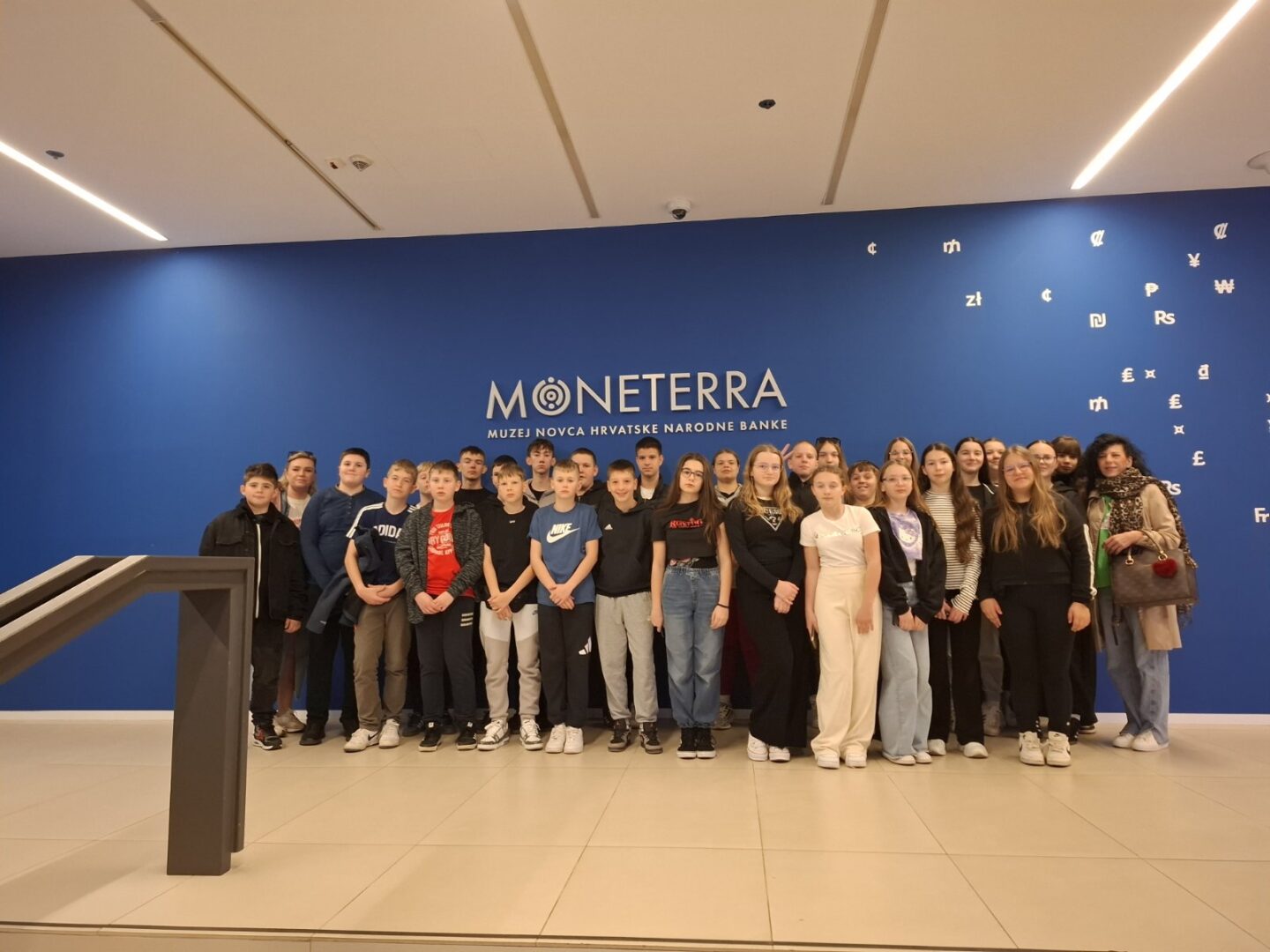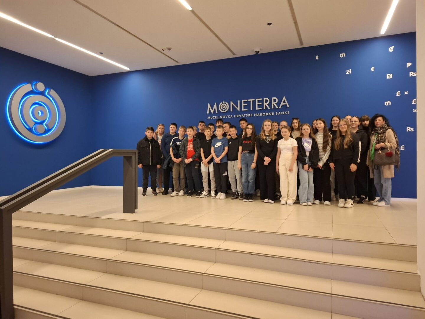 Prva destinacija bio je Moneterra – Muzej novca, suvremeni muzej Hrvatske narodne banke koji na inovativan način prikazuje povijest novca, njegov razvoj i ulogu u svakodnevnom životu. Tijekom organiziranog obilaska učenici su imali priliku upoznati se s različitim oblicima novca kroz povijest, naučiti kako nastaje novac te koja je uloga središnje banke.