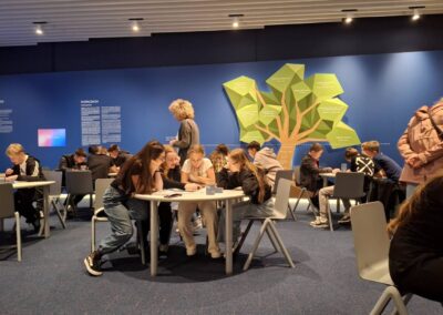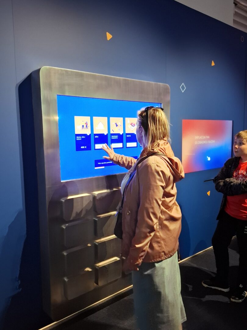 Poseban naglasak stavljen je na interaktivne sadržaje koji su učenicima omogućili aktivno sudjelovanje – kroz igre, kvizove i multimedijalne prikaze mogli su testirati svoje znanje i donijeti financijske odluke u simuliranim situacijama. Nakon obilaska, učenici su sudjelovali u edukativnoj radionici gdje su kroz praktične primjere učili o važnosti štednje, planiranju troškova i odgovornom odnosu prema novcu.