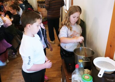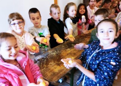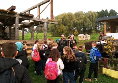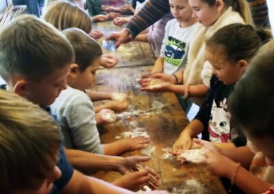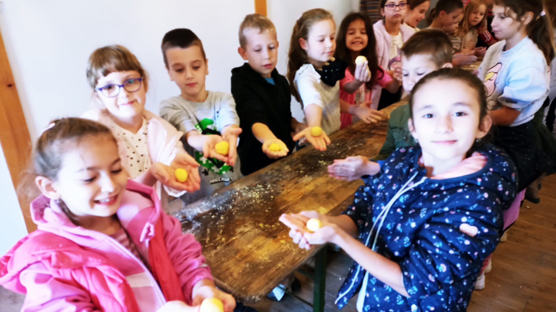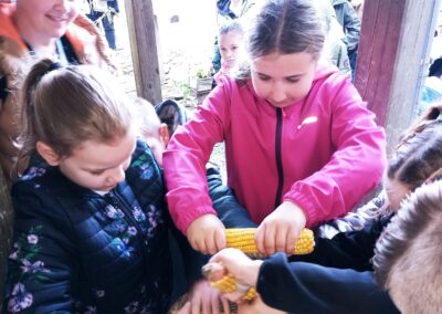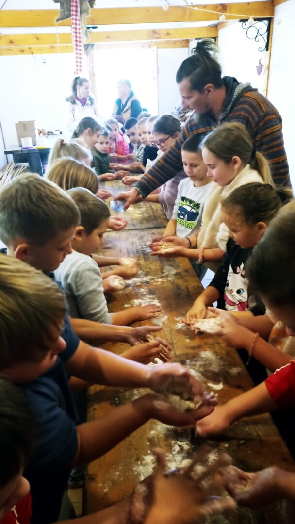 Na seoskom imanju učenici su prisustvovali radionicama izrade tijesta i sira gdje su kroz praktičan rad učili o nastanku svakodnevnih prehrambenih proizvoda. Posebno su ih oduševile domaće životinje koje su imali priliku pobliže upoznati i steći nova znanja o njima. Ova aktivnost snažno je pridonijela doživljaju Dana kruha kroz zahvalnost za plodove zemlje i trud čovjekovih ruku.