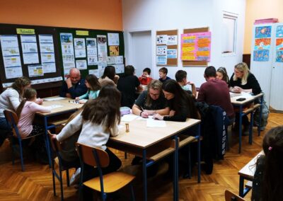 Održana je još jedna uspješna Večer matematike, tradicionalno događanje koje već godinama organizira Hrvatsko matematičko društvo u suradnji sa školama diljem Hrvatske. U našoj školi sudjelovali su učenici razredne nastave, a pridružili su im se i roditelji te ostali članovi obitelji koji su željeli zajedno istraživati i otkrivati čaroliju matematike.