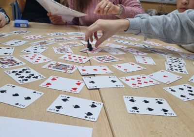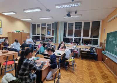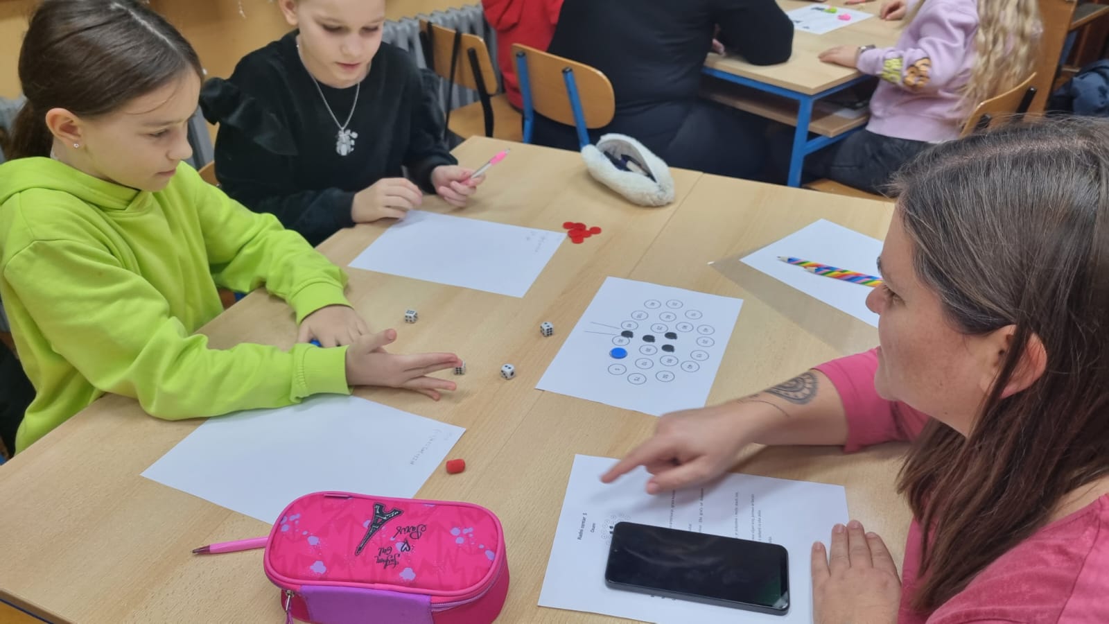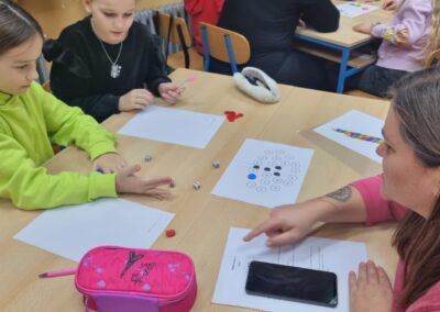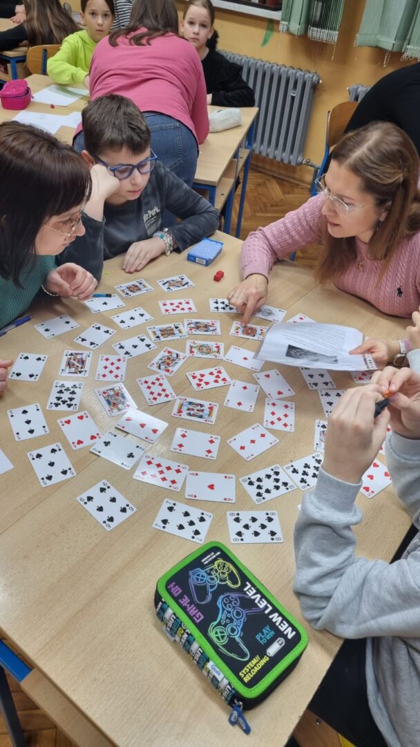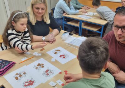 Program je započeo u 17 sati, a sudjelovali su učenici od prvog do četvrtog razreda zajedno sa svojim roditeljima. Kroz niz pažljivo osmišljenih aktivnosti – od crtanja i bojanja, preko mozgalica i online zadataka, pa sve do različitih kartaških igara – sudionici su imali priliku istraživati matematiku na kreativan, zabavan i potpuno opušten način.