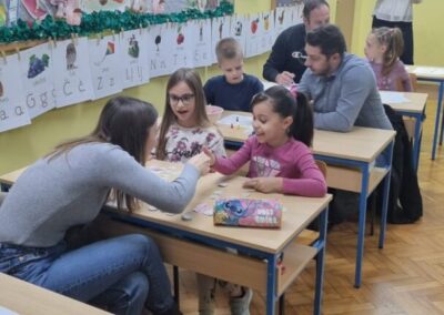 Prostor škole ispunio se smijehom, zajedništvom i znatiželjom. Djeca su s entuzijazmom rješavala izazove, a roditelji su im se pridruživali, stvarajući atmosferu u kojoj se učenje doživljava kao igra i zajedničko iskustvo.
